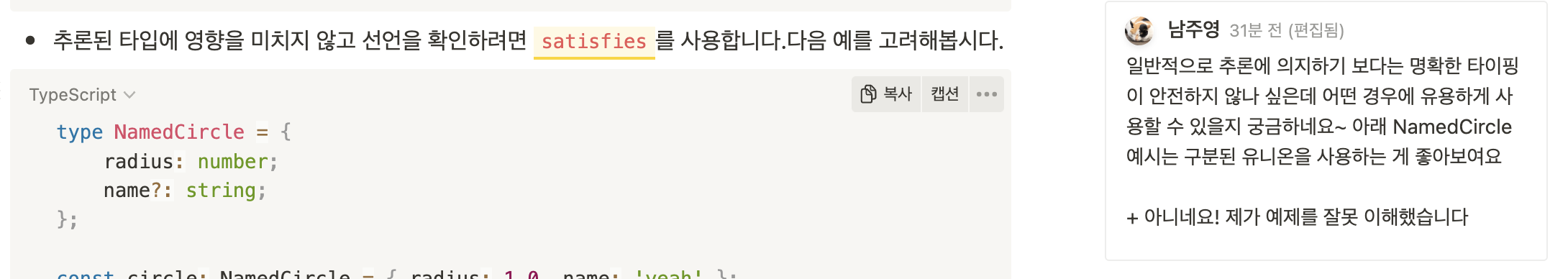 이렇게 알고 있던 지식과 연관지어 이해함으로써 타입스크립트의 집합 관점 개념을 더욱 단단하게 다질 수 있었다.