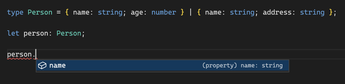 따라서 유니온 객체 타입은 때에 따라 각각의 객체 타입보다 더 작은 집합이 된다고 개념적으로 말할 수 있다.